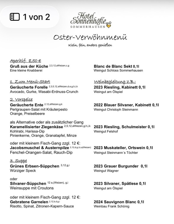 Änderungen vorbehalten, folgt hier das Oster-Menü: